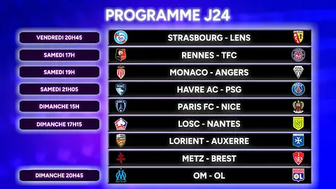 Rencontres à suivre du 27 février au 1er mars, avec Strasbourg-Lens, Le Havre-PSG, Monaco-Angers… Et le choc entre le 3e et le 4e, l'Olympique Lyonnais se déplace chez l'Olympique de Marseille.